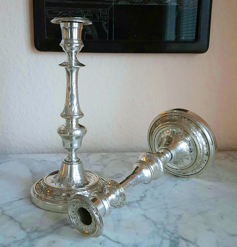 The candlesticks show authentic age-related signs of use that testify to their long history. Areas of silver wear