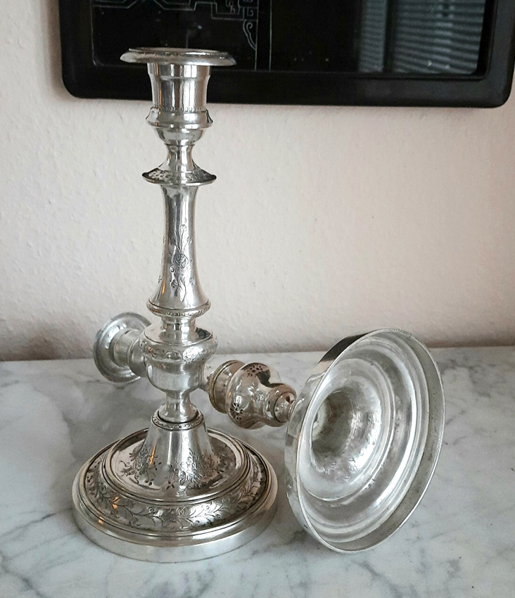 Antikes Paar versilberter Kerzenleuchter um 1895