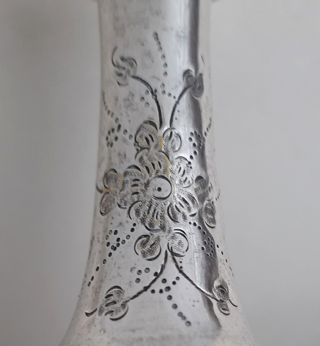Vom Fuß bis zur Tülle sind sie reichhaltig, jedoch äußerst fein ziseliert und mit floralen Ornamenten verziert,
