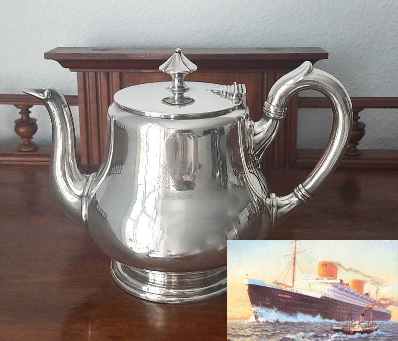 A beautiful teapot from aboard a legendary passenger liner!