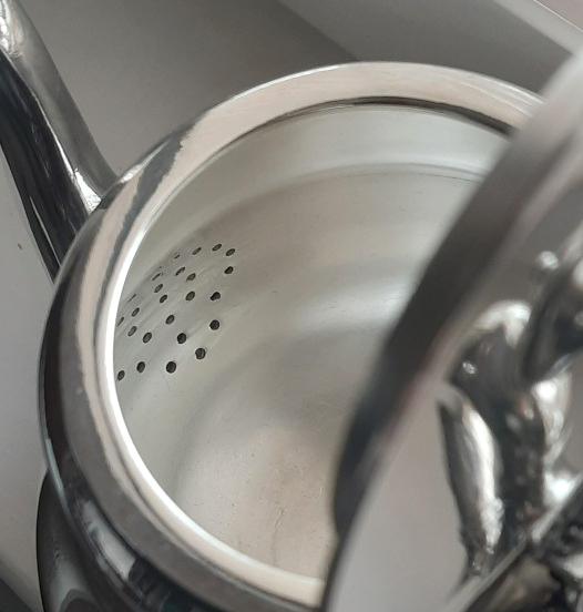 Integrated internal strainer at the spout.