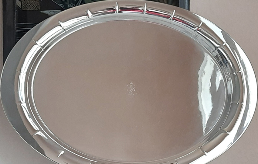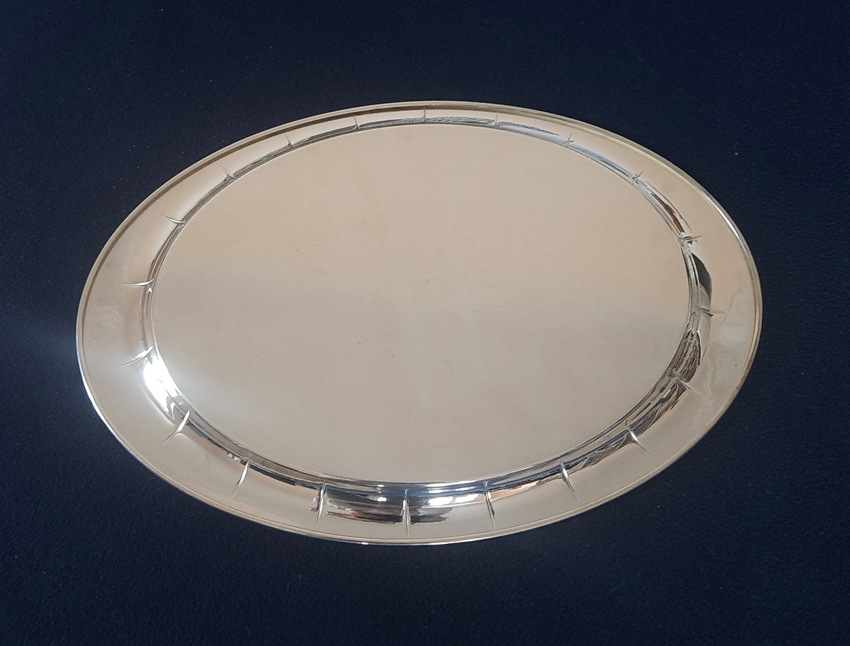 Großes versilbertes Art Déco Tablett von 1928