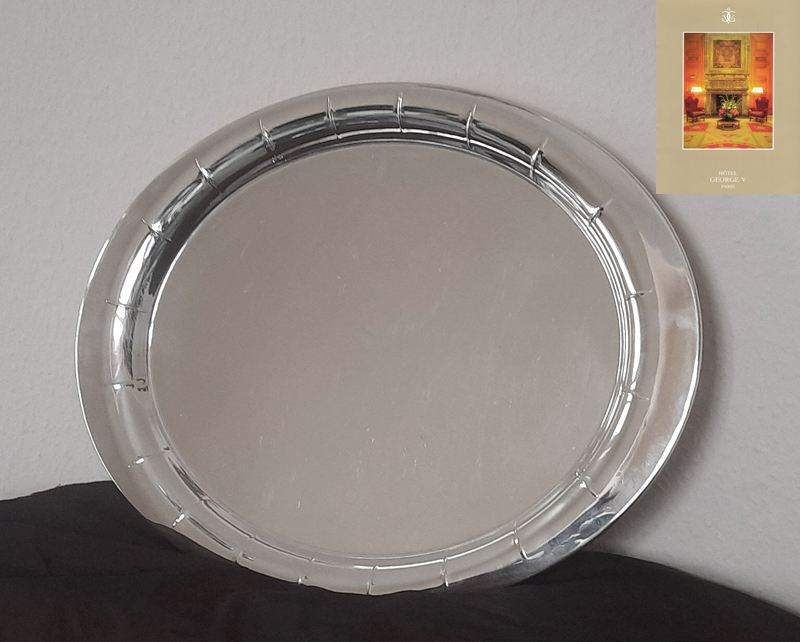 Großes Art Déco Tablett von 1928 versilbert Berndorfer Metallwarenfabrik aus legendärem Pariser Palasthotel