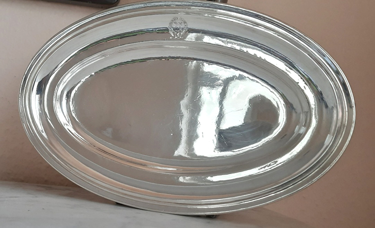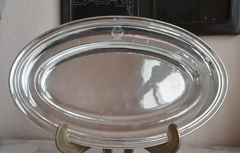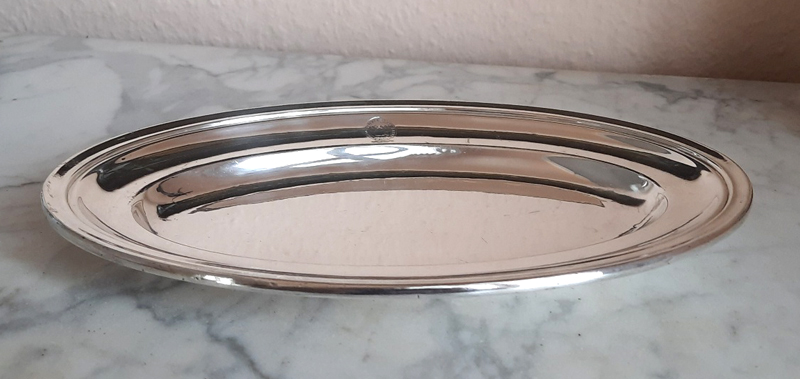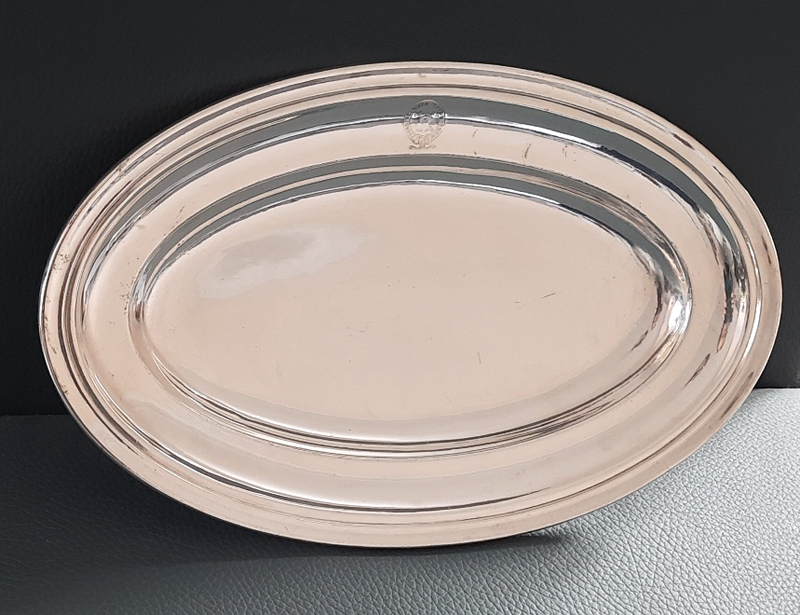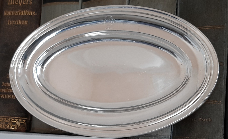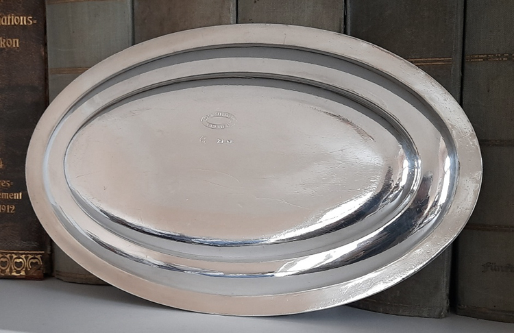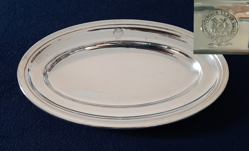 Kleine, ovale Servierplatte um 1900 versilbert Koch & Bergfeld Bordgeschirr der 1. Klasse des Norddeutschen Lloyd, Bremen