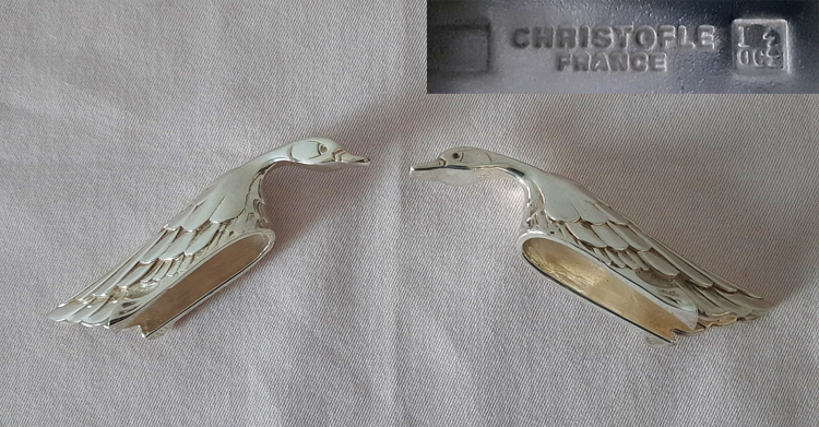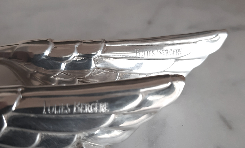Paar figürliche Messerbänkchen 1950er Jahre Künstler-Entwurf versilbert Christofle aus legendärem Pariser Revue-Theater