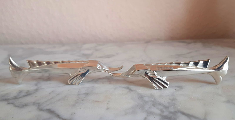 Paar Messerbänkchen in figürlicher Form eines Schwertfisches (plastisch dargestellt).