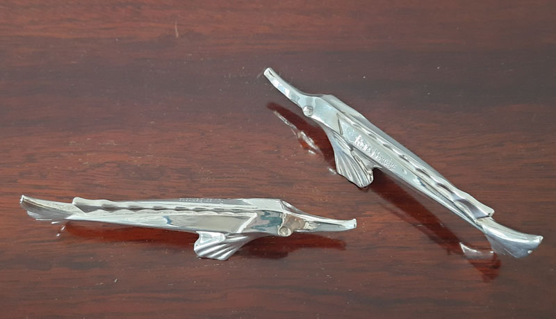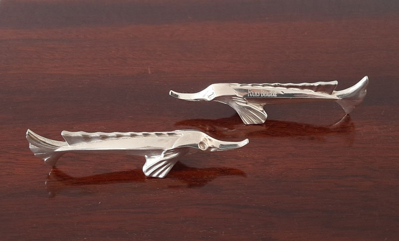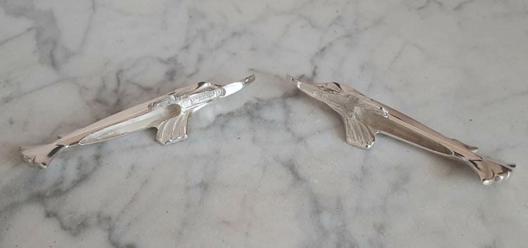 Pair of knife rests in the figurative form of a swordfish (sculpturally rendered).
