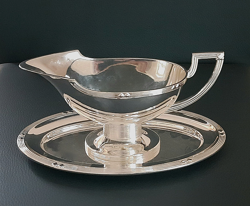 Silver-Plated Sauce Boat with Tray, circa 1903